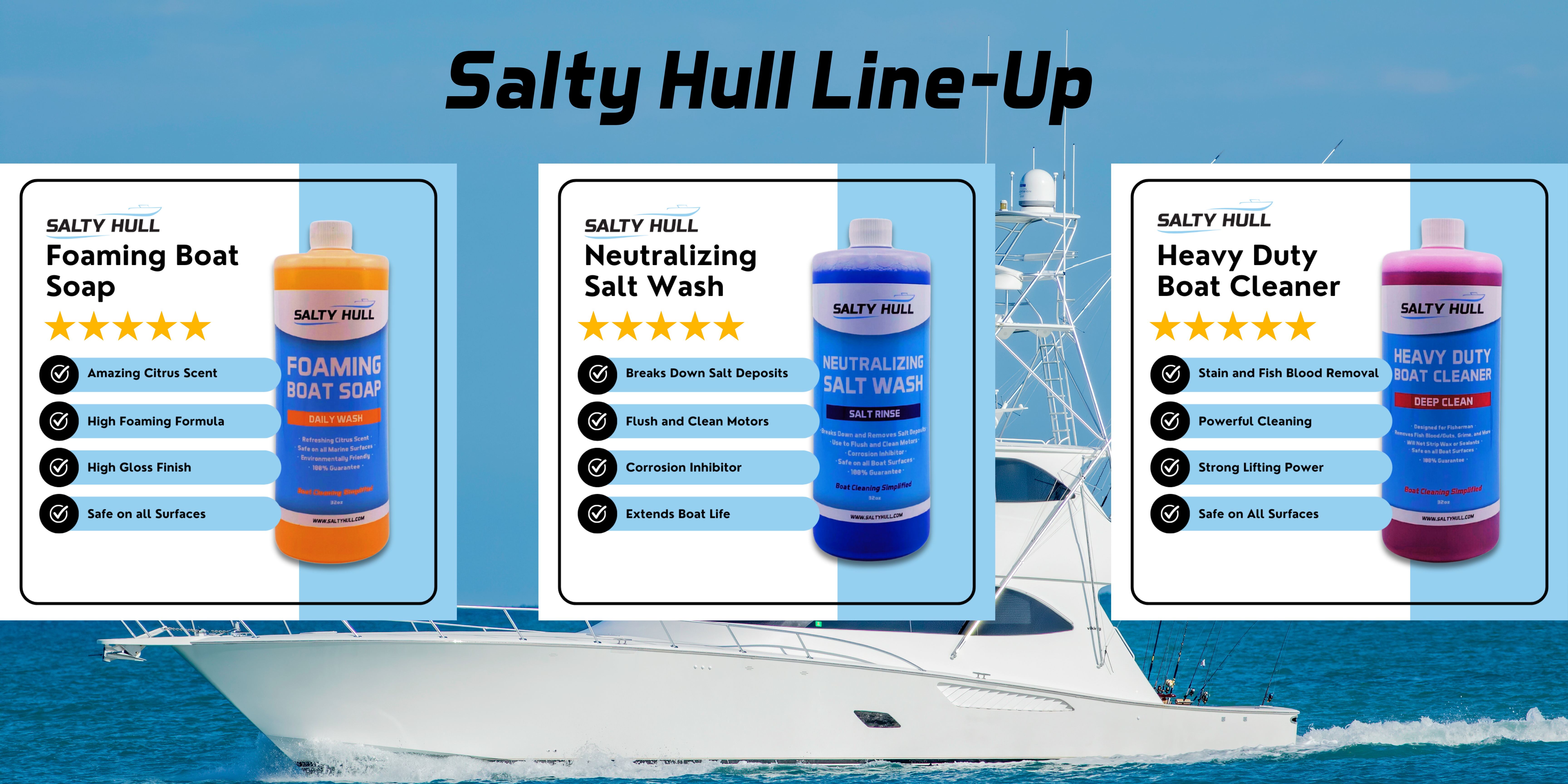 No More Buckets • Just Foam & Rinse Neutralizes Salt • Stops Corrosion Before It Starts Fast Turnaround • Back on the Water Sooner